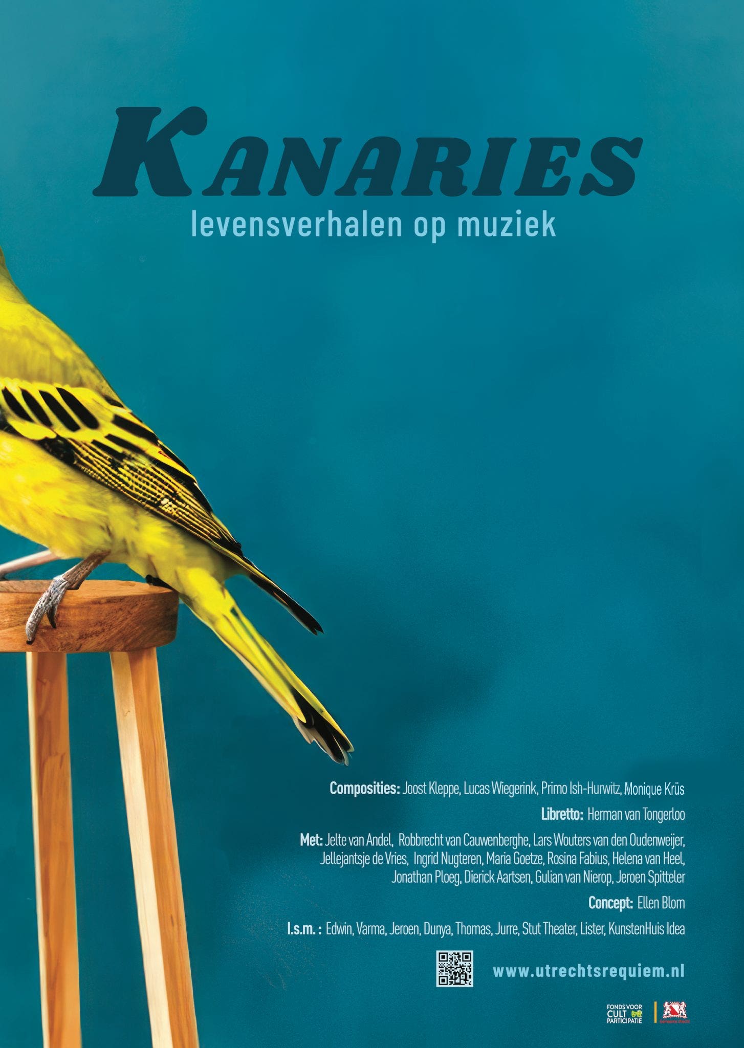 The Utrechts Requiem is a wonderful initiative by director Ellen Blom. Stories of people who had a bad start in life and found the strength to make something of it are set to music. This November will be the fourth edition,' Kanaries'. Krüs already created several compositions in 2019 and 2021, now followed by 'Huis van de rijzende zon' on a text by Herman van Tongerloo. With the Postland Ensemble.