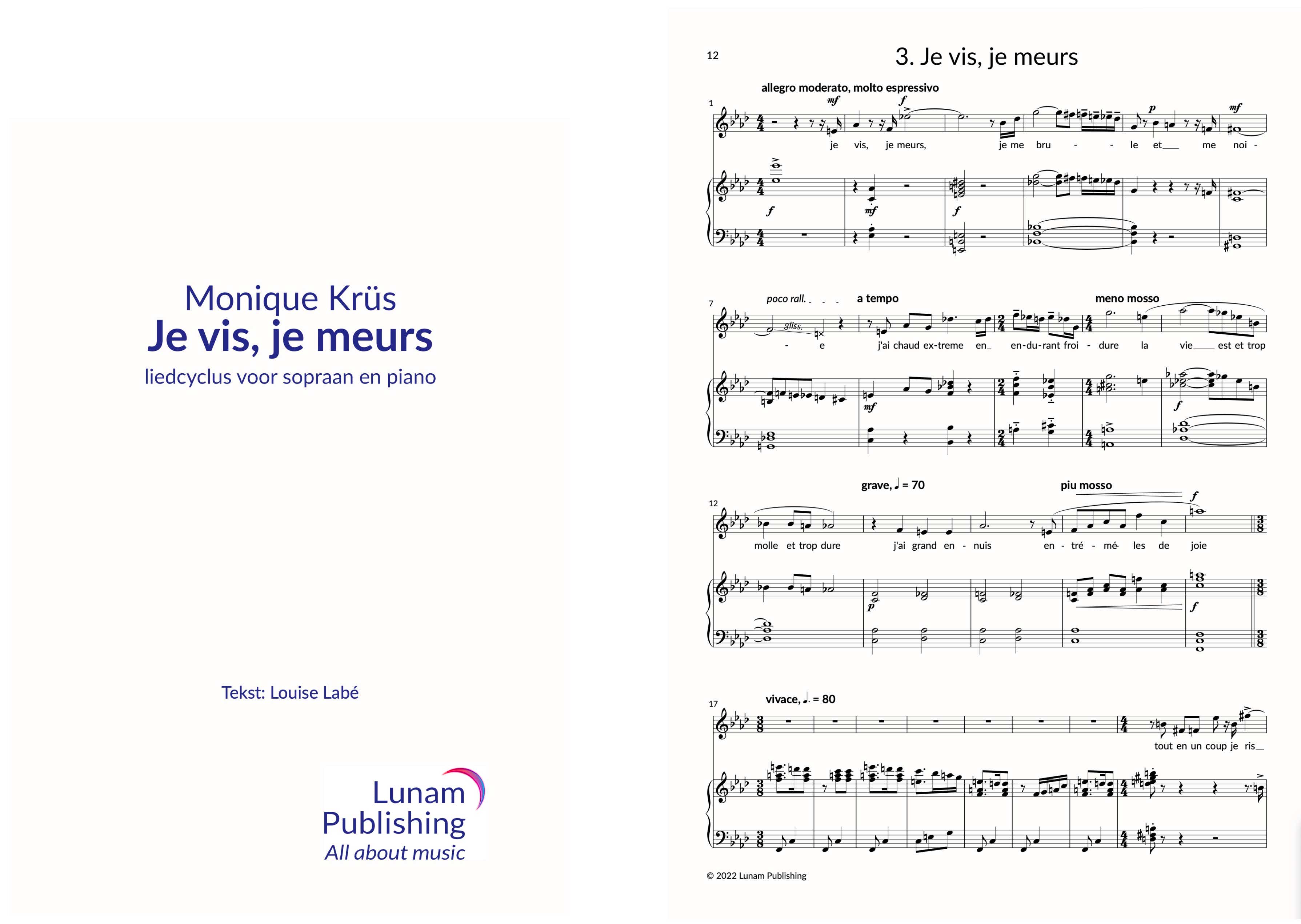 For soprano Bauwien van der Meer I composed the song cycle Je vis, je meurs on poems by Louise Labé. Great reviews for the original performance with string quartet, organ and harp; now an arrangement for high voice and piano is available! Read all the reviews and purchase your PDF here!