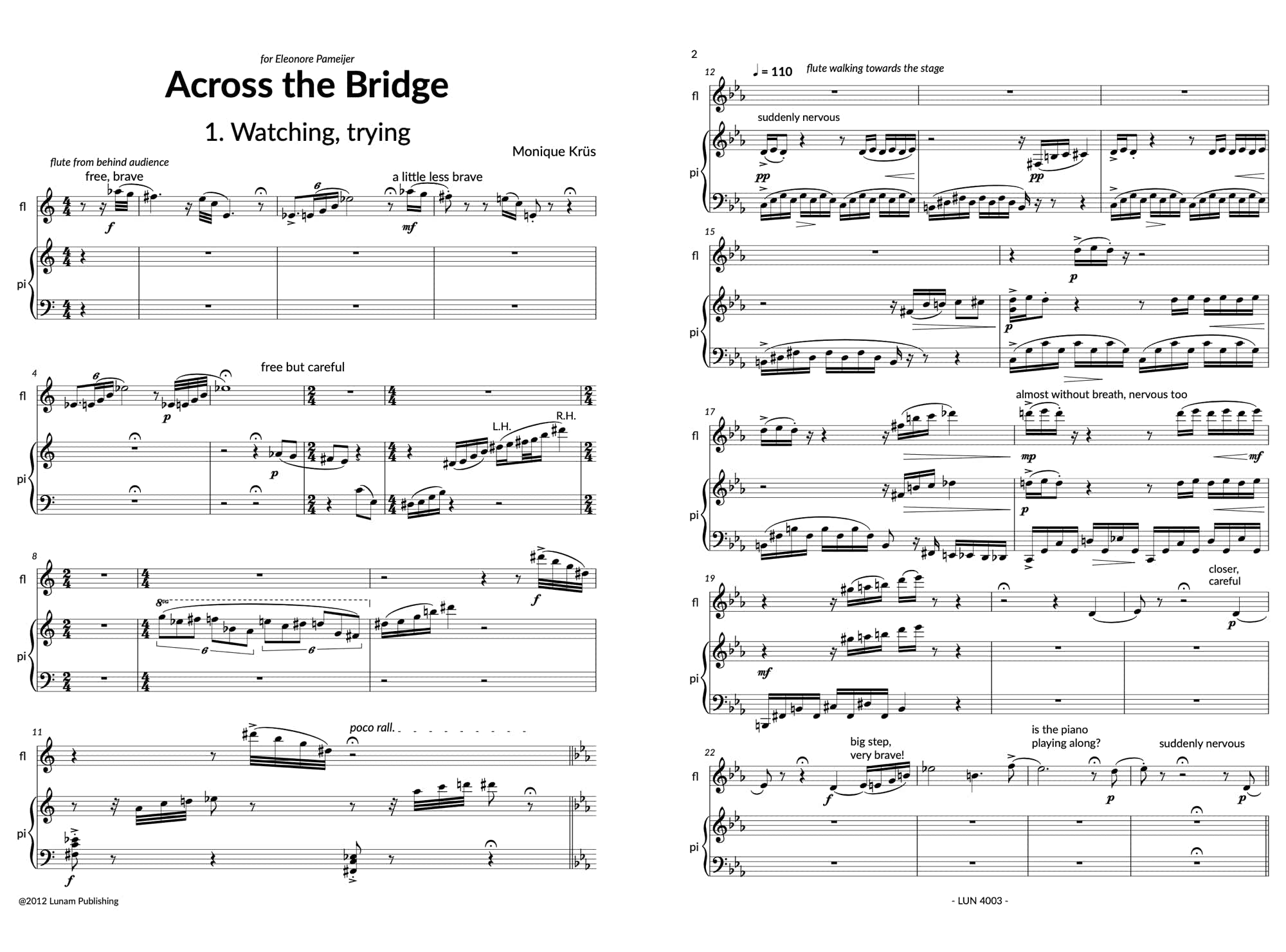 For renowned flutist Eleonore Pameijer, Krüs composed a cycle inspired by the famous Chainbridge in Budapest, the first bridge to connect the Hungarian cities of Buda and Pest in 1849. Together with pianist Lodewijk Crommelin she performed it in one of the Uilenburger Concerts in Amsterdam on May 14th, 2012. The piece requires a bit of acting from both players.