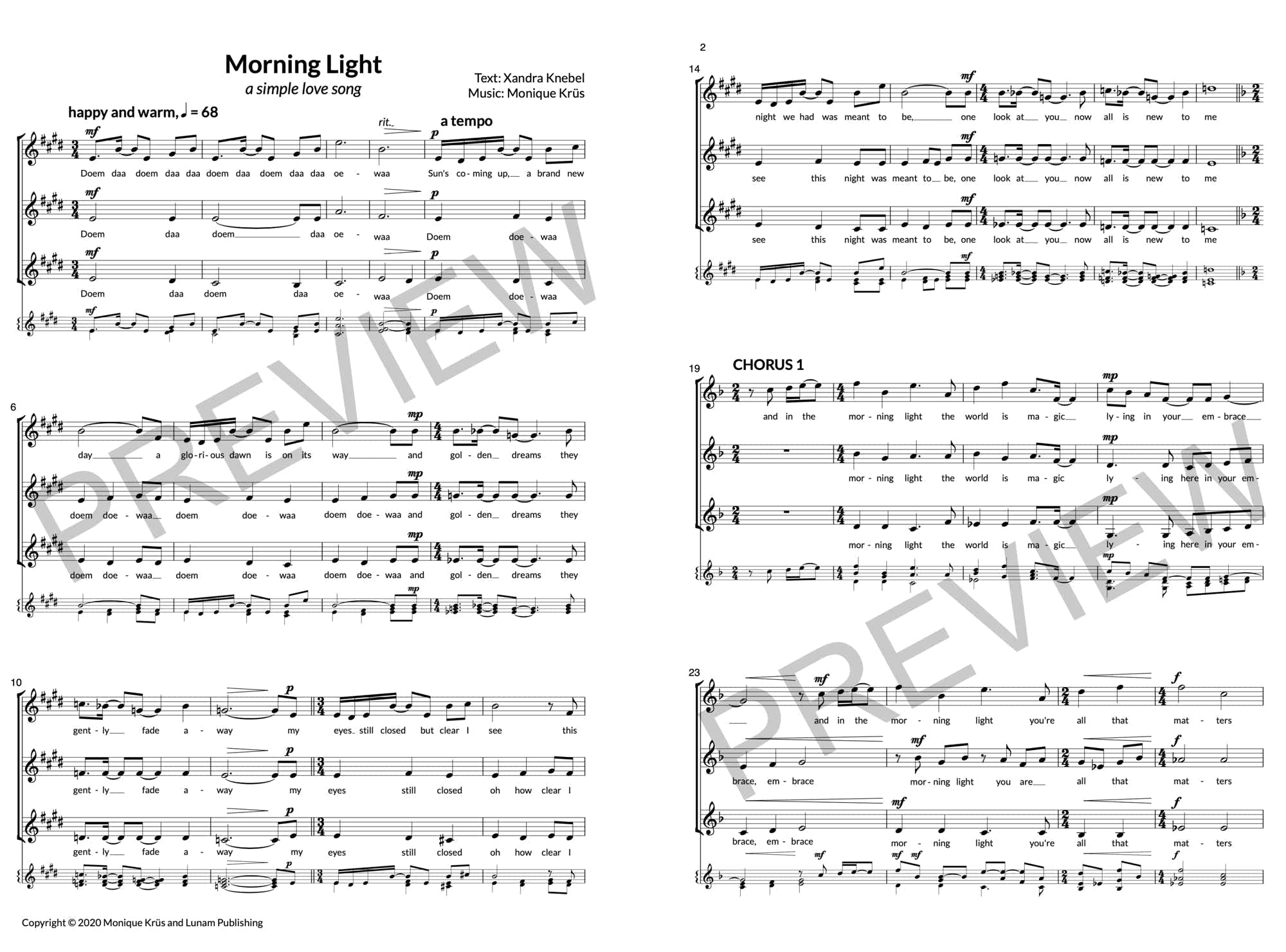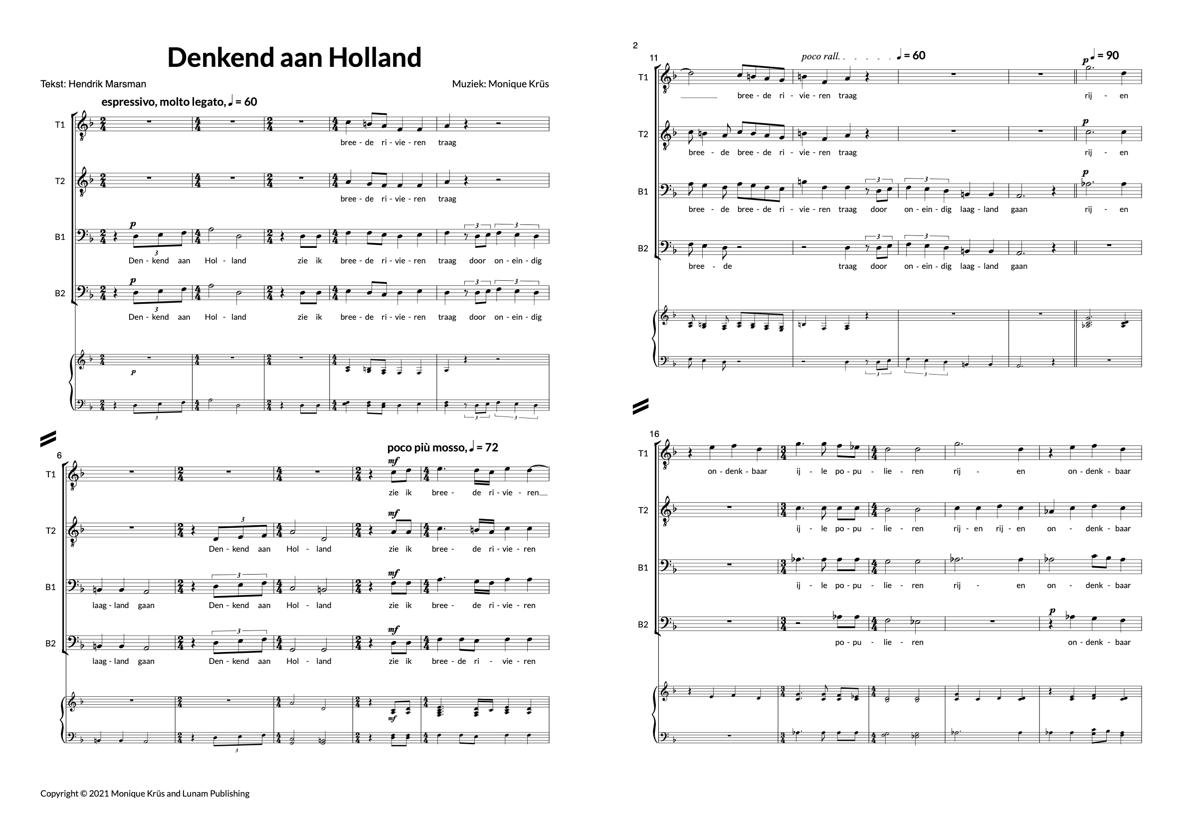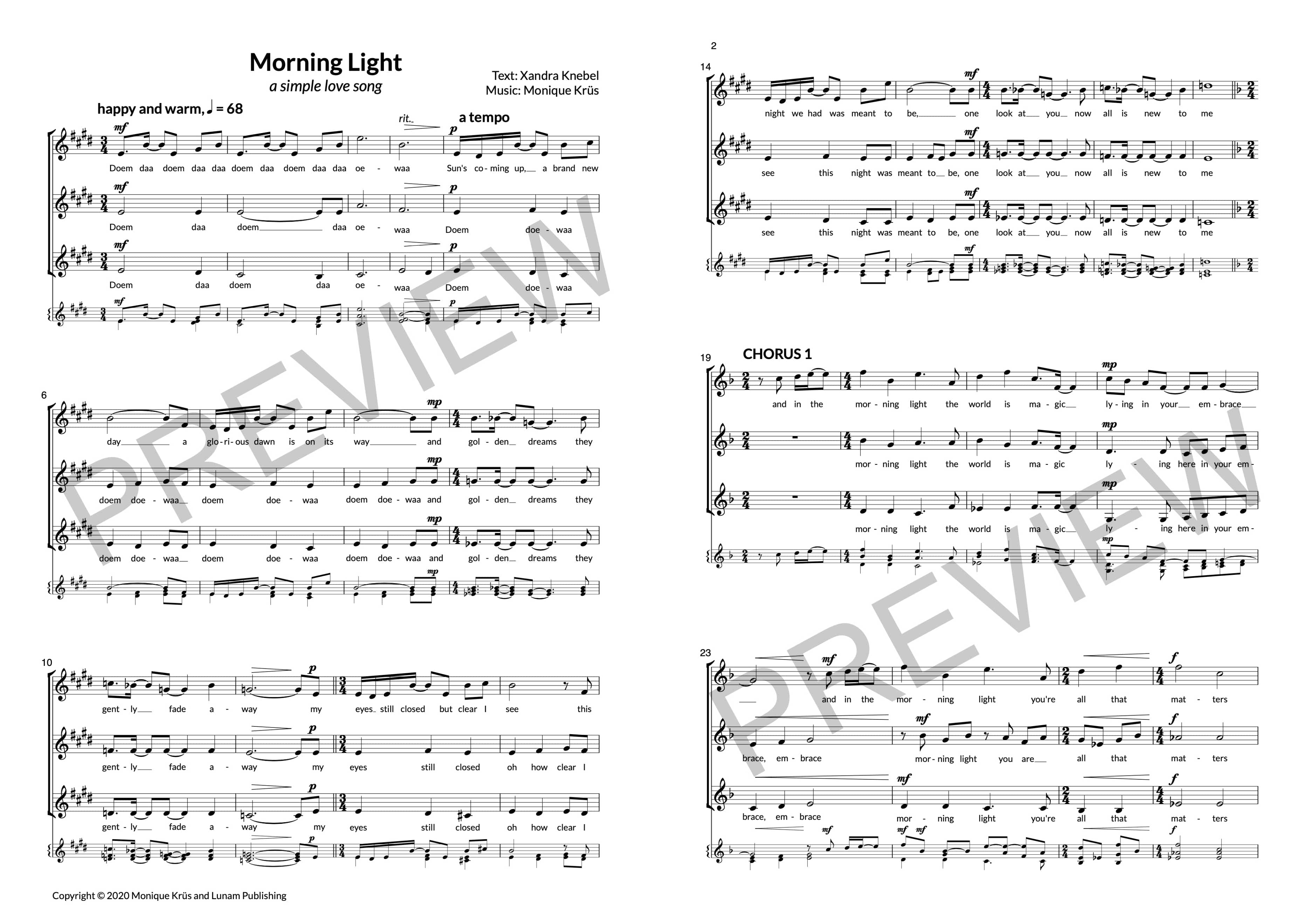 This work was inspired by the opera Corto Maltese (Krüs, 2018). Krüs used the music to create a calming lovesong for a capella voices and with an arrangment for string quartet.