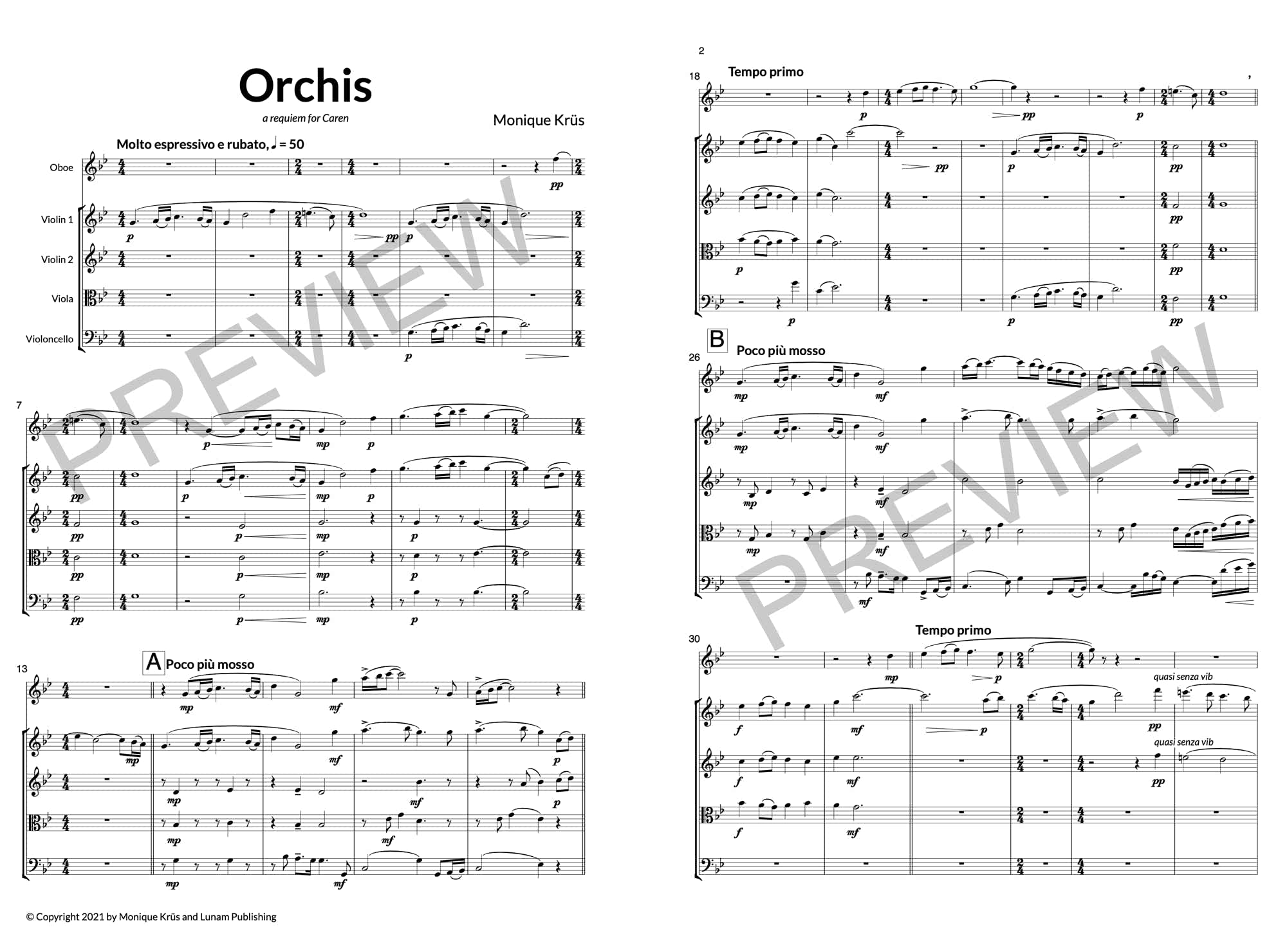 Commissioned by Ruud Keulen to commemorate the death of his wife Caren on August 4, 2010. The notes C and E, her initials, have been used throughout the composition which ends in C major.
