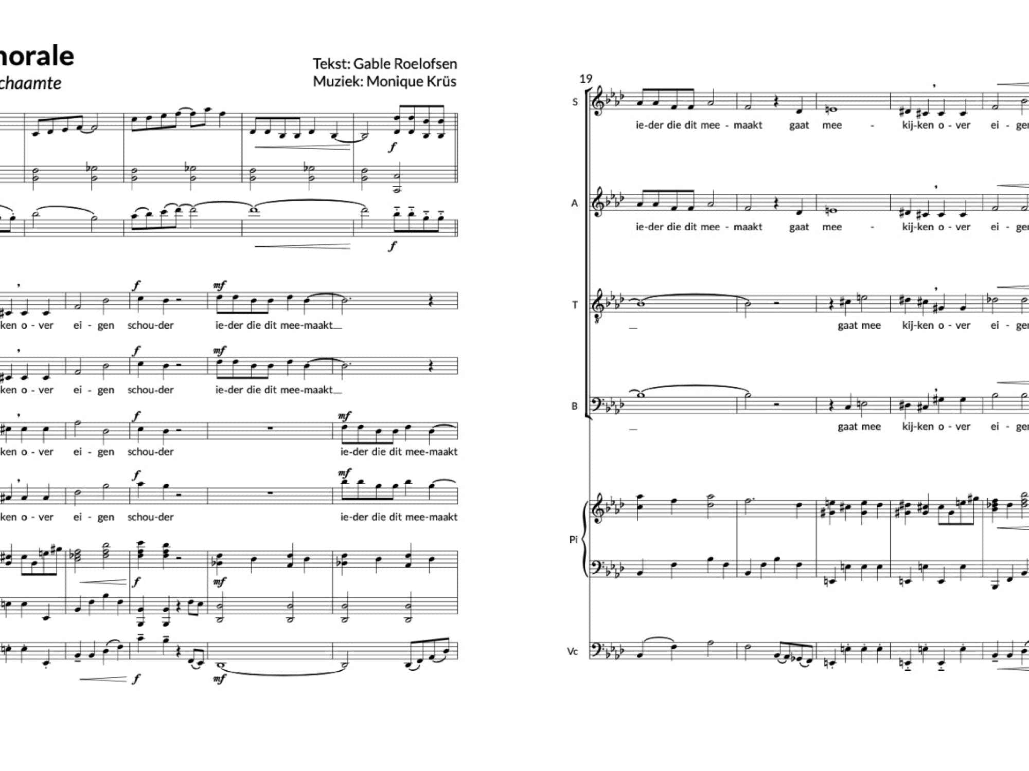 Romy and Gable Roelofsen of Het Geluid, creators of many socially engaged opera-projects and winners of Prins Bernhard Fundation Inspiration Prize, invited Krüs to compose and conduct the 'Requiem for Shame' for Common Chorale, a beautiful community-choir project in Maastricht. A rhythmical, theatrical piece, well singable for amateur singers